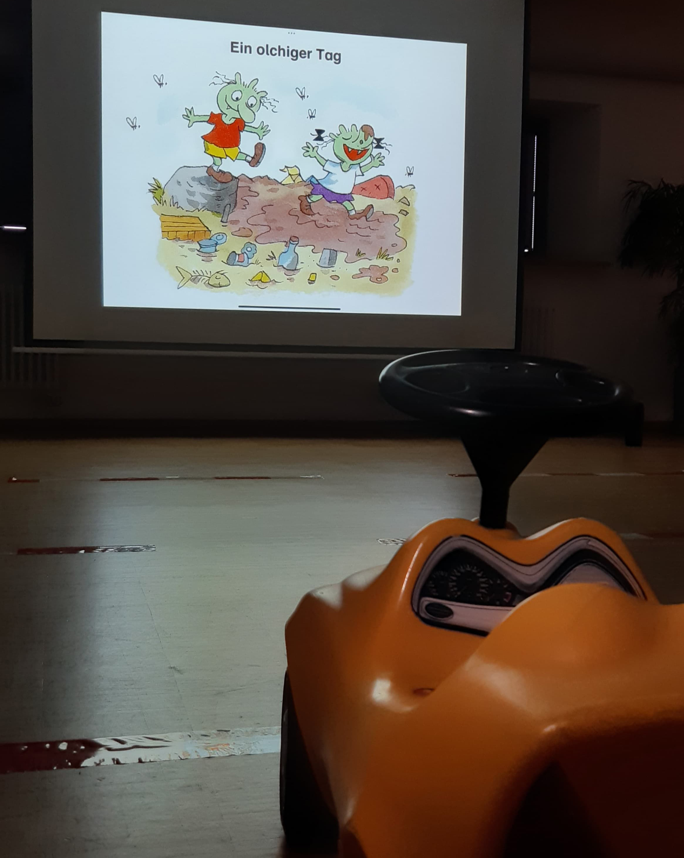 Ein besonderer Höhepunkt für die kleinen Gäste der Stadtbibliothek war zudem das Onilo Autokino. Hierbei konnten die Kinder mit ihrem Rutschauto, Laufrad oder Dreirad in den eigenen „Parkbuchten“ vor einer Leinwand Platz nehmen und bei einem Trinkbeutel einen Kurzfilm anschauen. „Zu unserem Autokino hat uns viel positive Resonanz erreicht. Nicht nur die Kinder hatten ihren Spaß, auch bei den Erwachsenen weckte die Aktion nostalgische Gefühle“, freut sich Nina Auer, „da die Veranstaltung so gut ankam, wird es voraussichtlich im Oktober eine Wiederholung geben.“